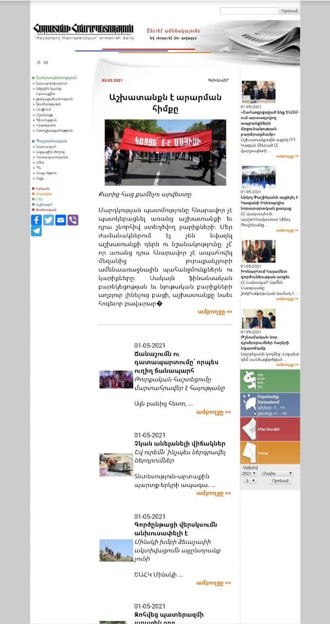 خبرگزاری صدا و سیما، مهمترین عناوین روزنامههای امروز ارمنستان به شرح زیر است.