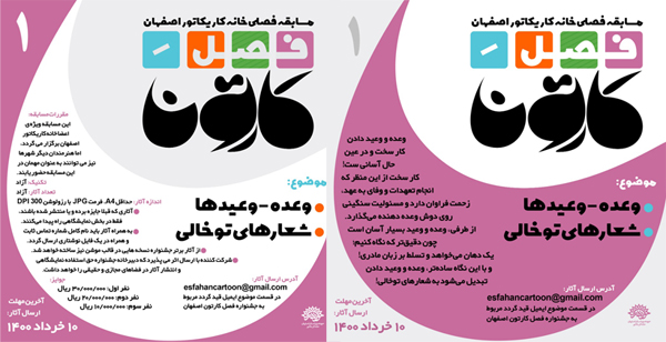 فراخوان نخستین مسابقه کاریکاتور فصلی خانه کاریکاتور اصفهان با نام «فصل کارتون» منتشر شد.