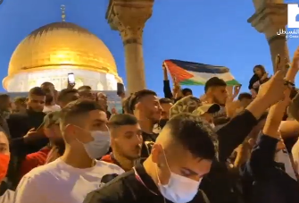 به گزارش سرویس بین الملل خبرگزاری صدا و سیما، پایگاه خبری القسطل تصاویری را از شعار دادن جوانان فلسطینی در صحنهای مسجد الاقصی در حمایت از نوار غزه پخش کرد.