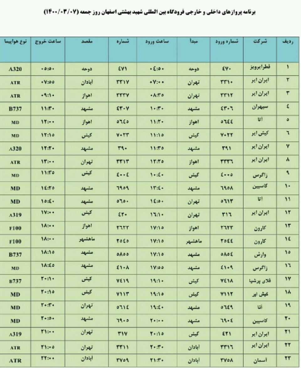 شما می‌توانید برنامه پرواز‌های امروزِ فرودگاه شهید بهشتی را در اینجا ببینید.
