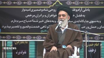 به گزارش خبرگزاری صدا و سیما مرکز خراسان شمالی؛ نماینده مردم خراسان رضوی در مجلس خبرگان رهبری در مراسم ارتحال امام (ره) در مسجد جامع گفت : دشمنان باتوطئه و شبهه افکنی برخی از اعضای انقلاب را از انقلاب جدا کردند اما بدنه ملت توفنده وشتابنده وبالنده وقدرتمند مسیر را به سمت قله های بلند استقلال وآزادی پیش می برند و ادامه می دهند.