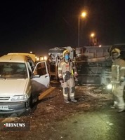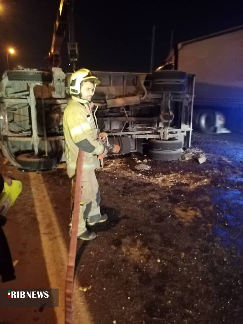 سخنگوی آتش نشانی ادامه داد: این دستگاه خاور پس از برخورد با دو سواری پراید واژگون شده و دچار نشت شدید گازوئیل بود که نیرو‌های آتش نشانی سریع ایمن سازی محل را در دستور کار قرار دادند.