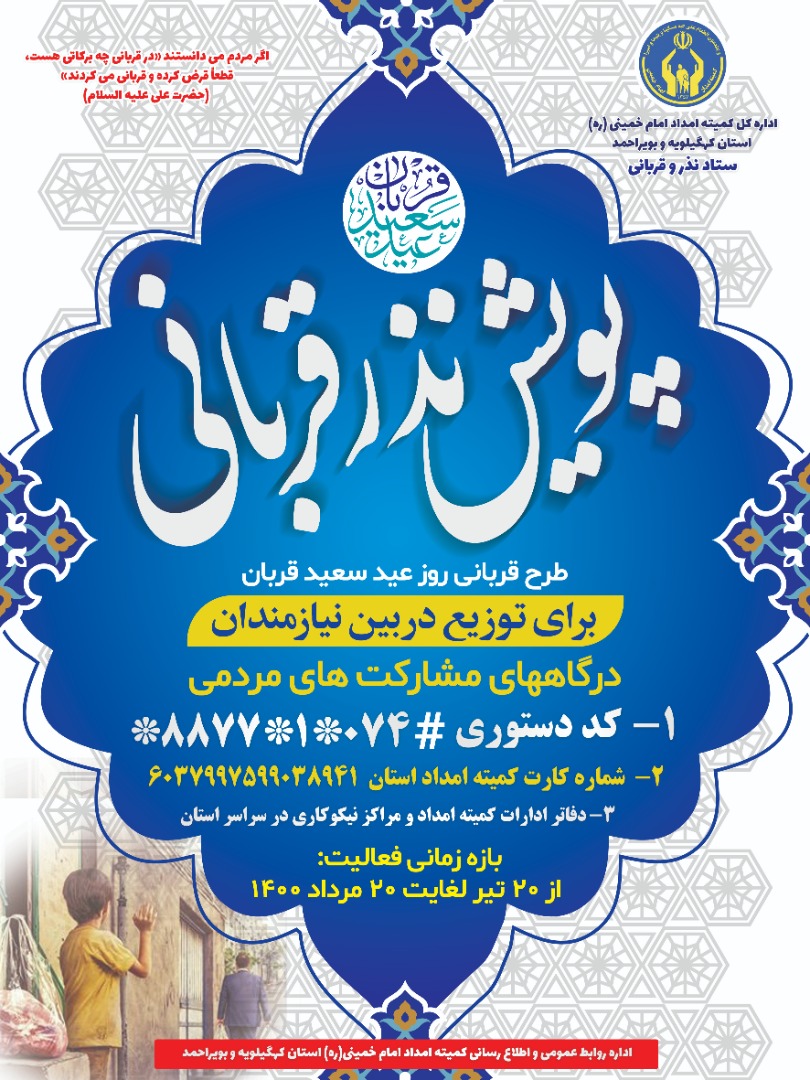 پویش نذر قربانی، طرحی است که در آستانه عید سعید قربان برای رسیدگی به امور نیازمندان و کمک به معیشت آنان در استان اجرا میشود.