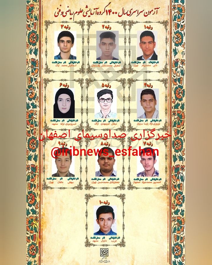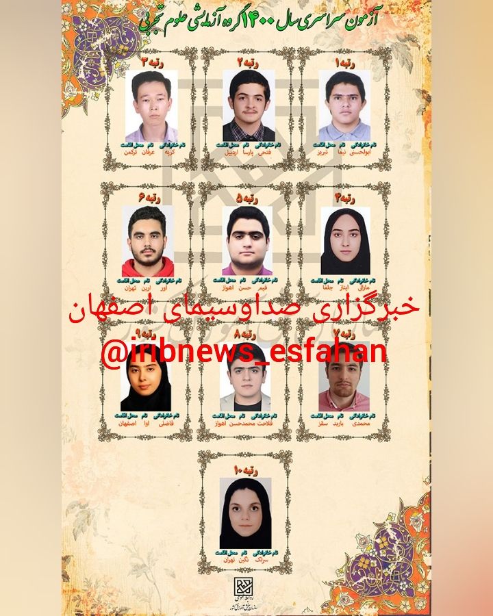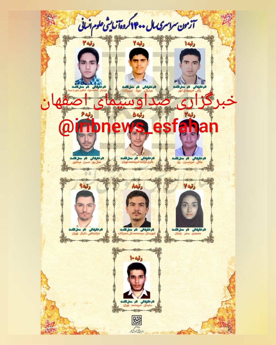 چهار اصفهانی در جمع نفرات برتر آزمون سراسری سال ۱۴۰۰ قرار گرفتند.