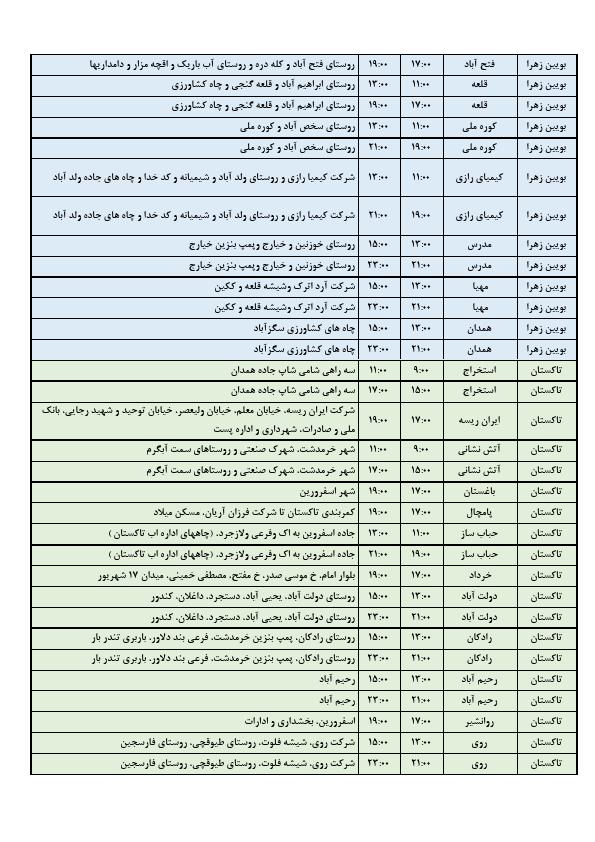 شرکت توزیع نیروی برق قزوین، برنامه جدید خاموشیهای احتمالی برق از ۱۶ تا ۲۱ مردادماه را منتشر کرد.