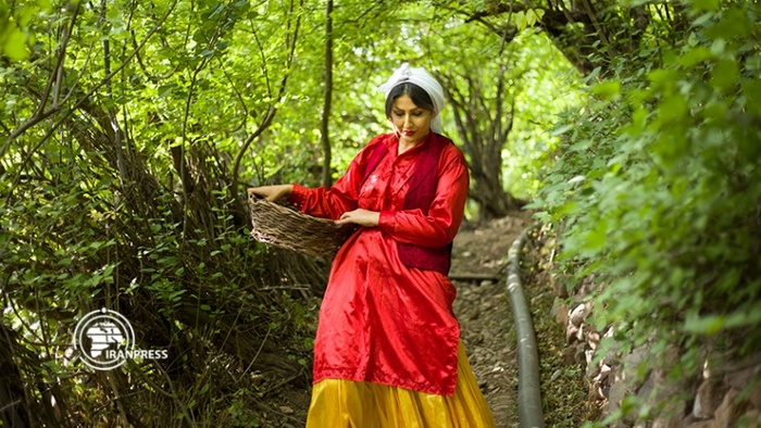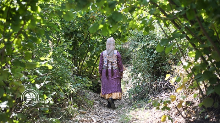 لباس محلی زنان روستای فشک، هنگام برداشت فندق، نشان‌دهنده توجه آنان به حفط آداب، رسوم و فرهنگ محلی است.