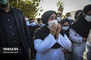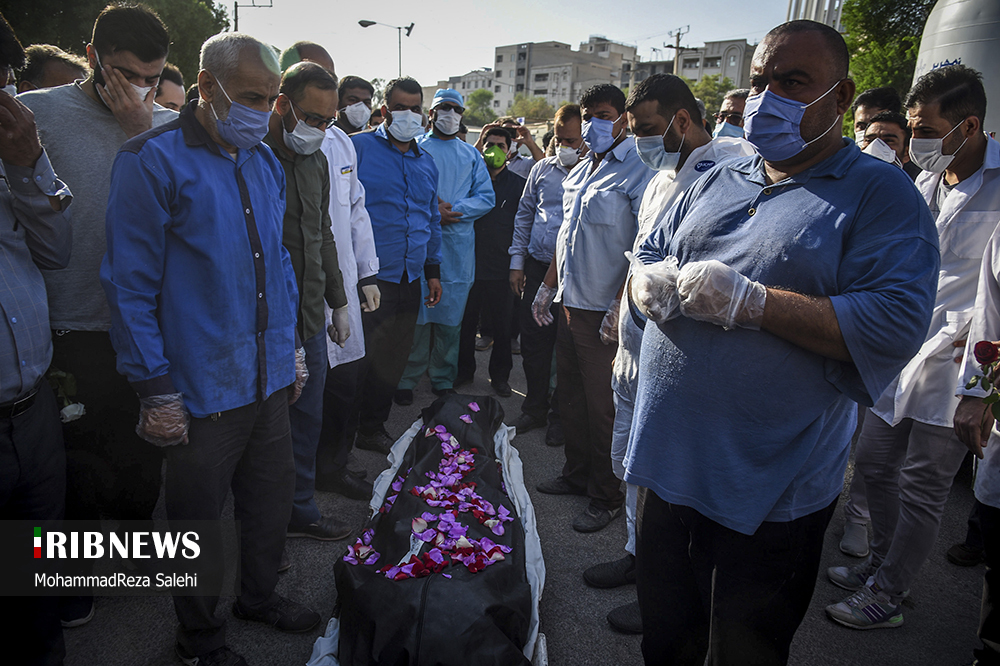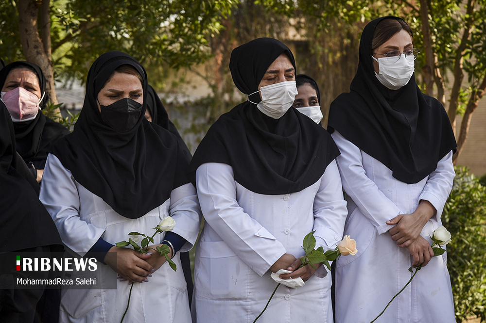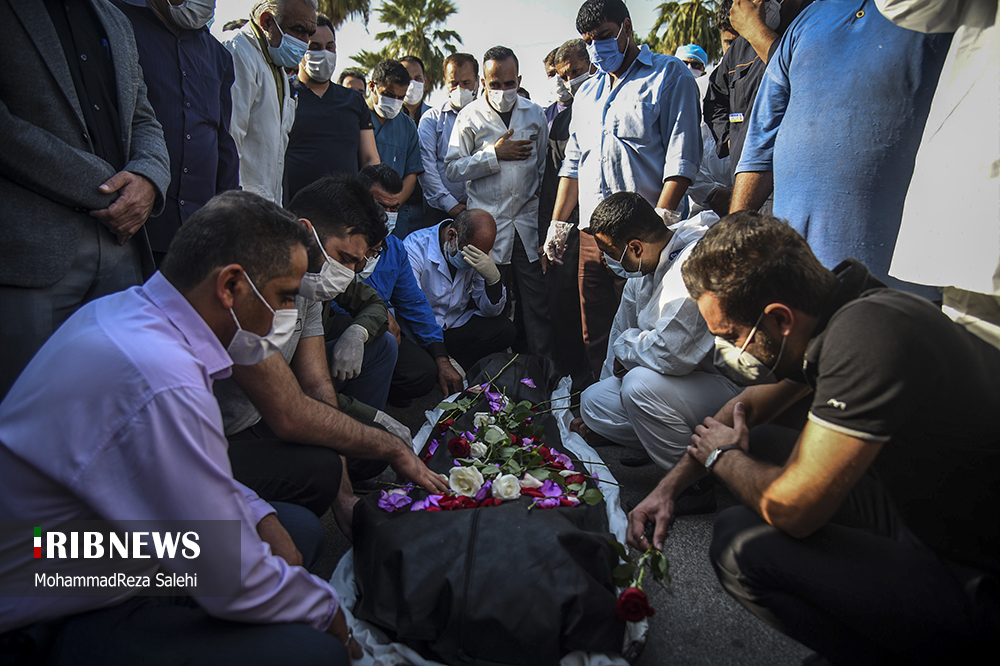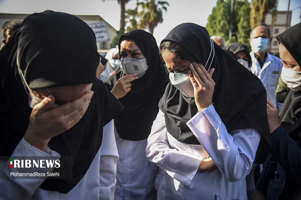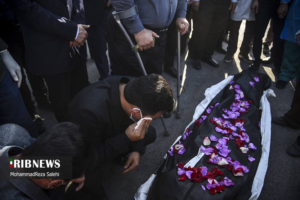 مراسم تشییع شهید مدافع سلامت صفدر امیری در بیمارستان گلستان اهواز