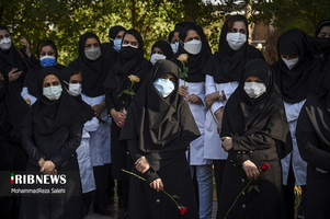 تشییع پیکر شهید مدافع سلامت علی فعال در بیمارستان بقیة الله الاعظم (عج)