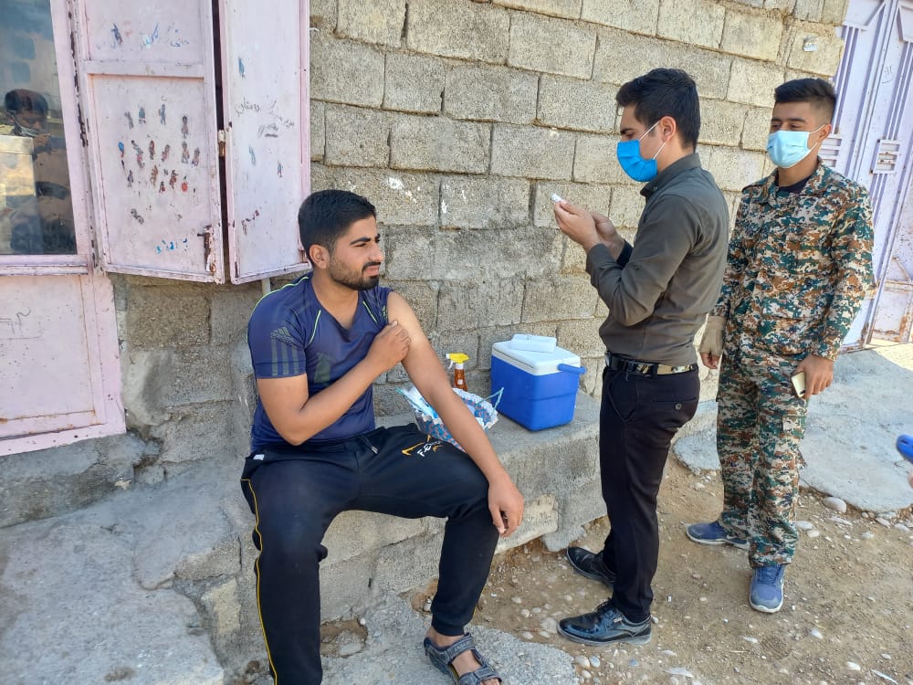 گروههای جهادی سپاه آغاجاری درکنار توزیع بستههای بهداشتی، کار تزریق واکسن روستائیان را هم انجام میدهند.