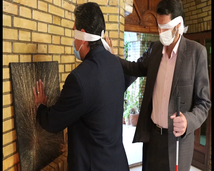 بازدیدکنندگان نمایشگاه "عصای سفید" در اقدامی نو، با چشمانی بسته و با عصای سفید در این نمایشگاه قدم زدند.
