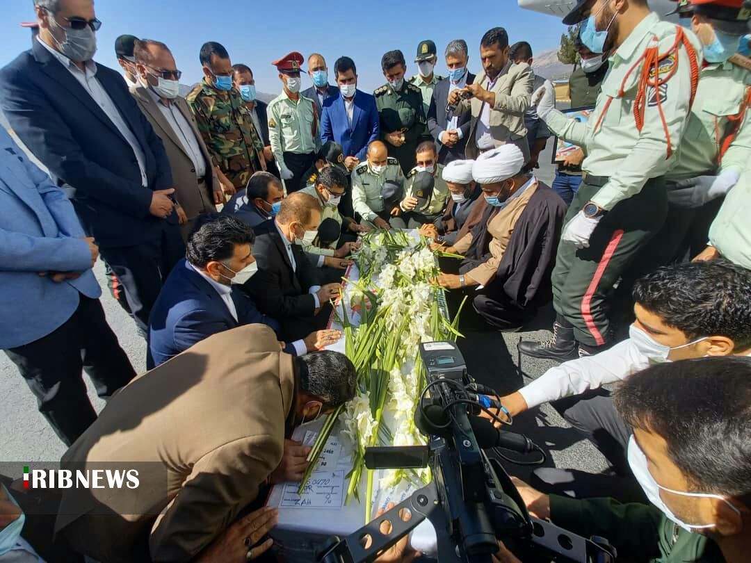 پیکر شهید موسی نوروزی از کارکنان نیروی انتظامی که روز گذشته به درجه رفیع شهادت نائل آمد با استقبال مسئولین وارد فرودگاه یاسوج شد.