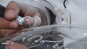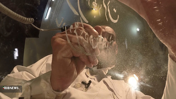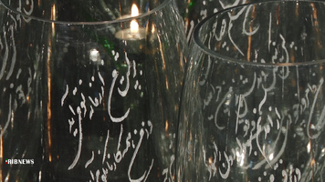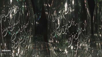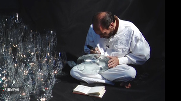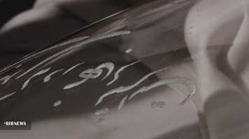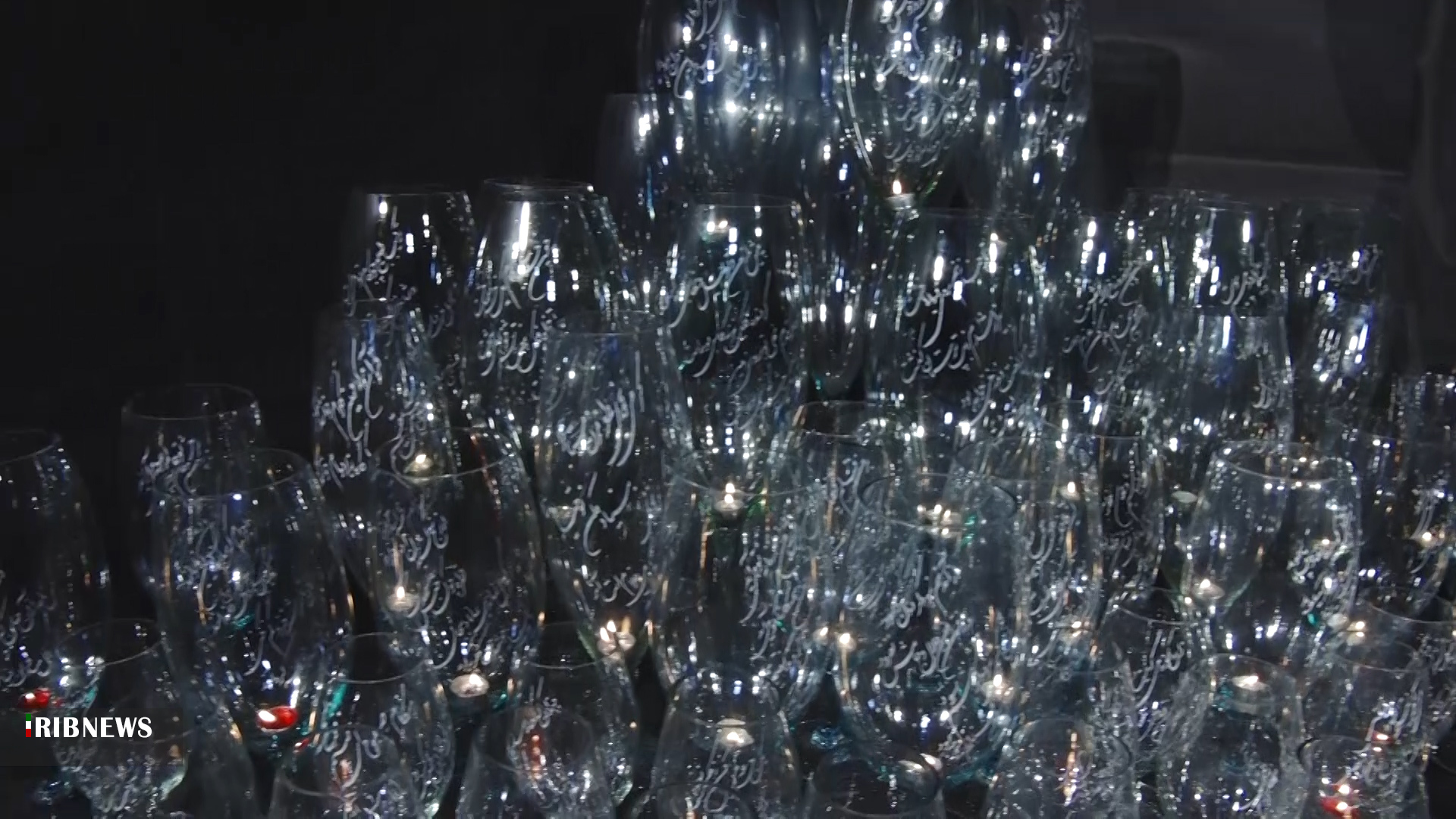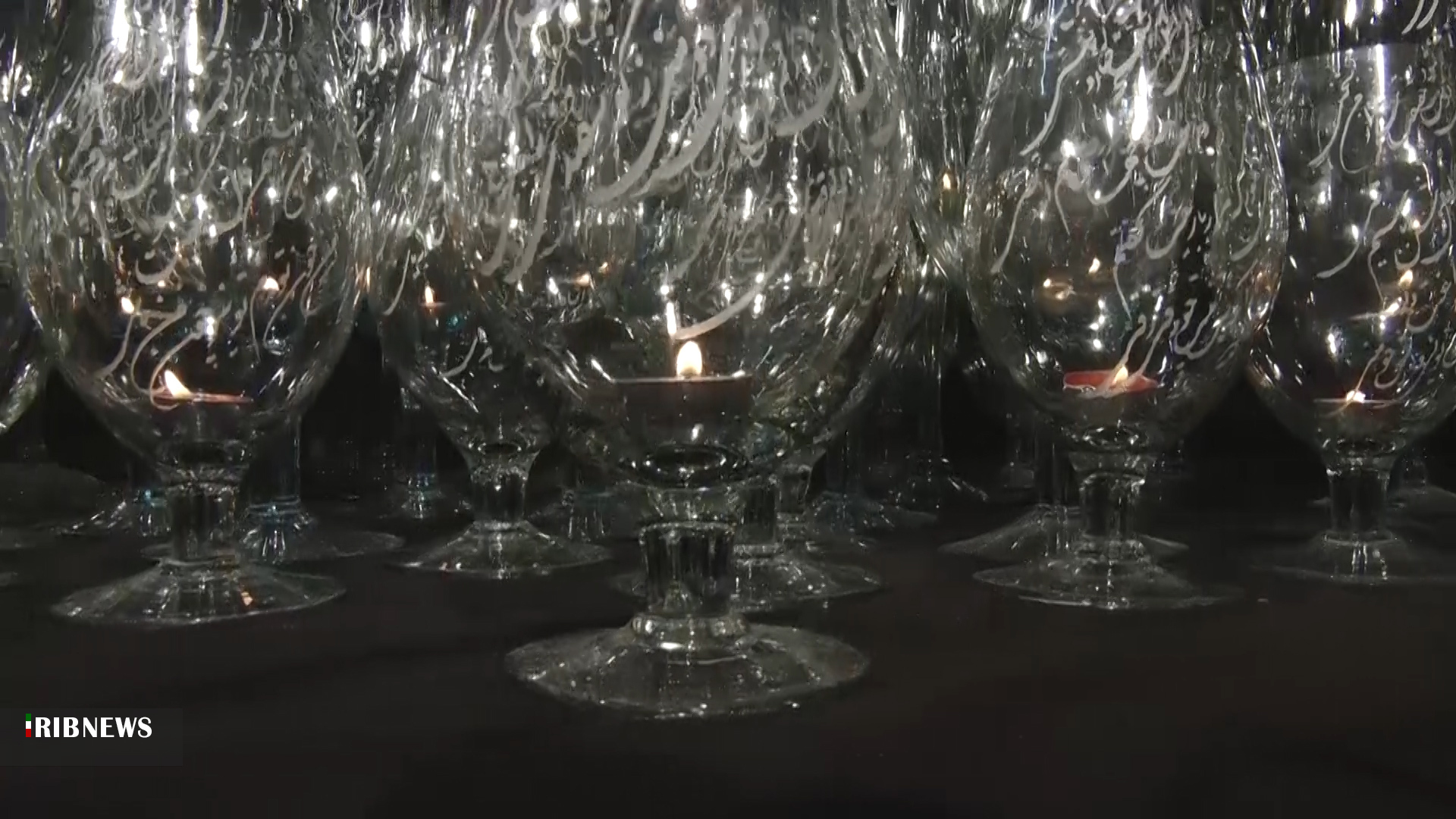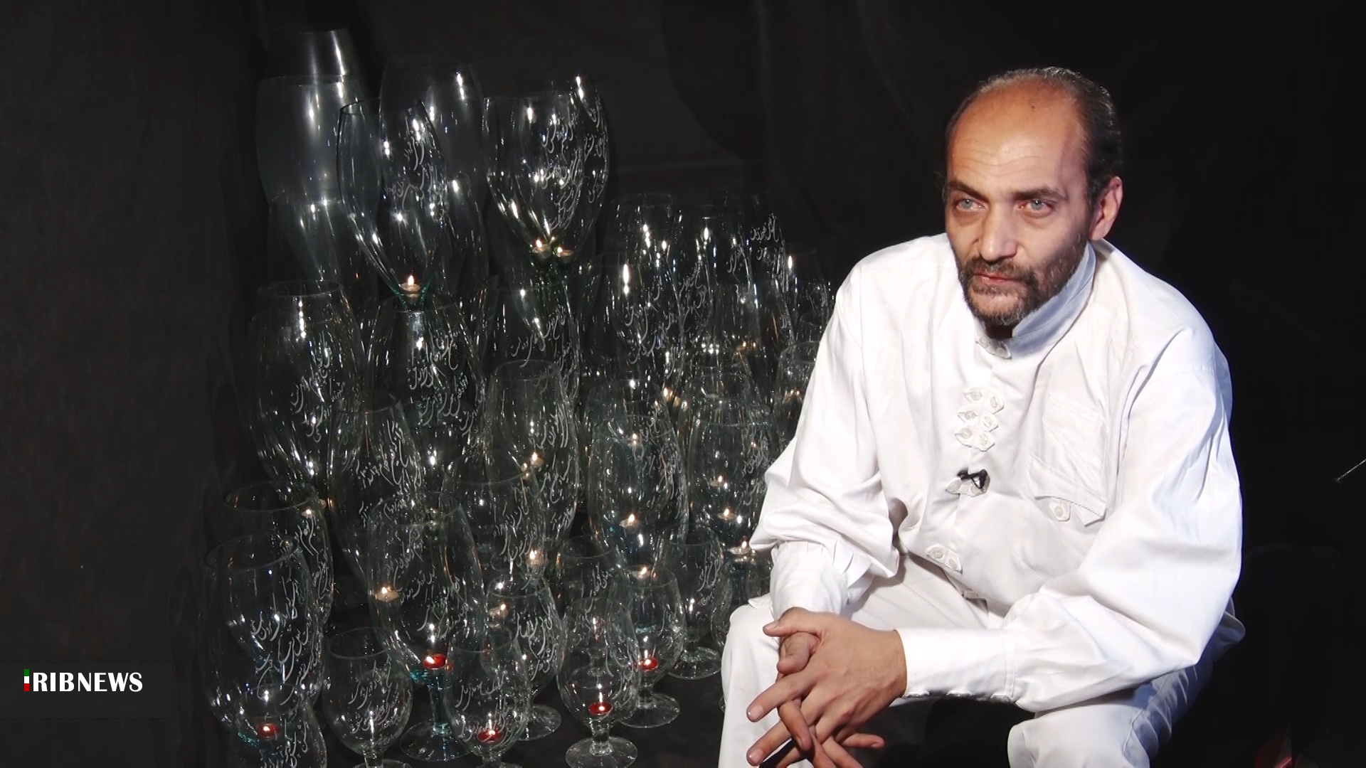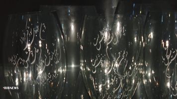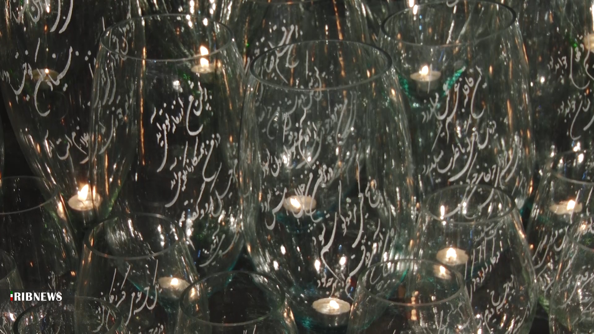 هنرمند شهرضایی با حک کردن ۱۷۸ رباعی از خیام نیشابوری بر روی گلدانهای شیشهای موفق به خلق کتاب شیشهای اشعار شد.