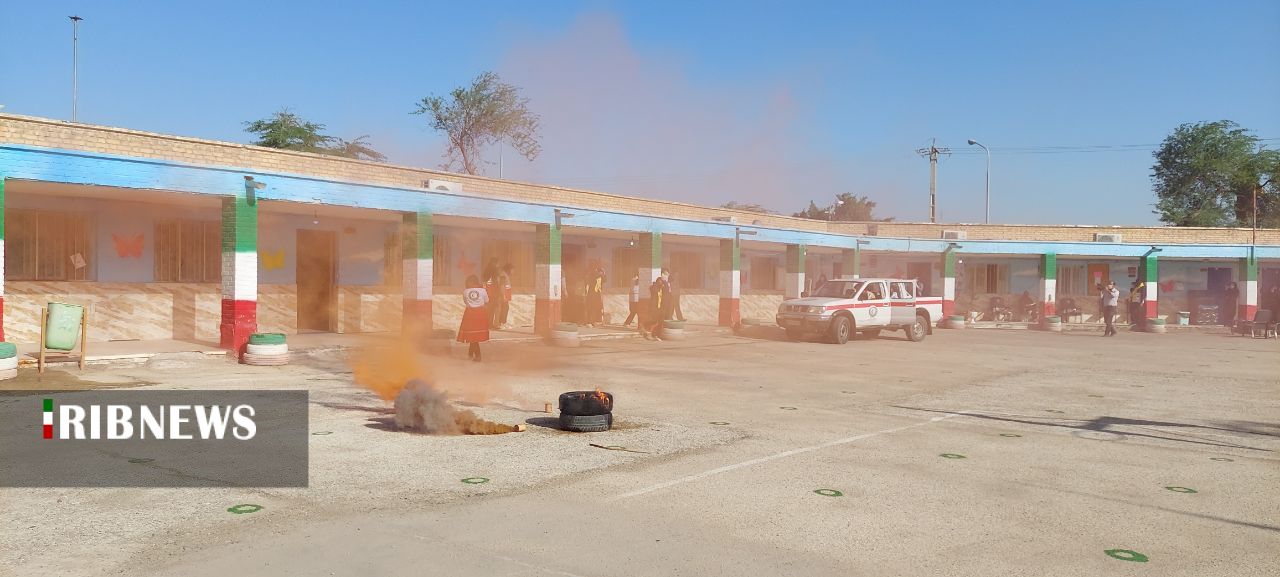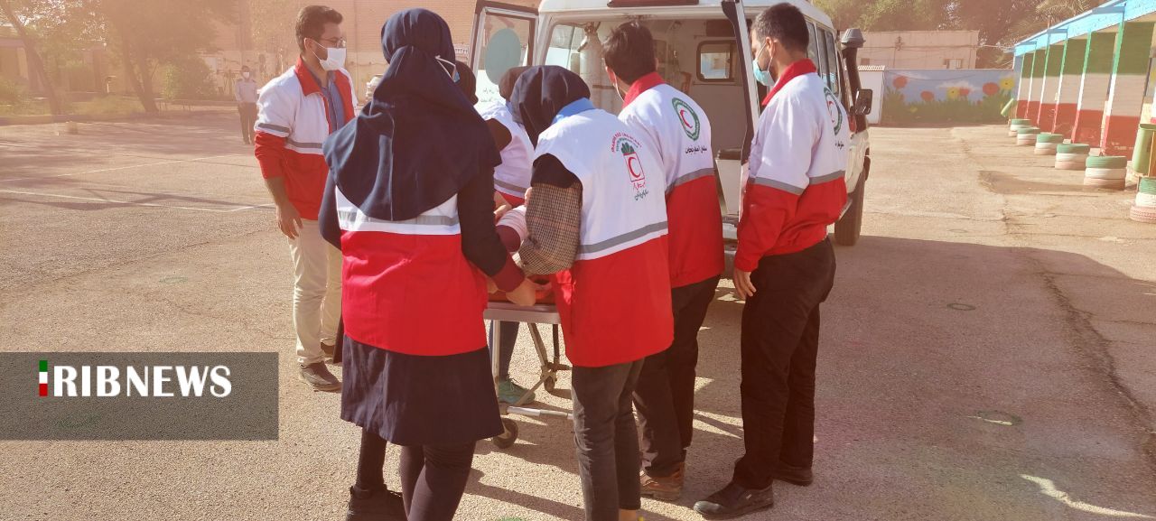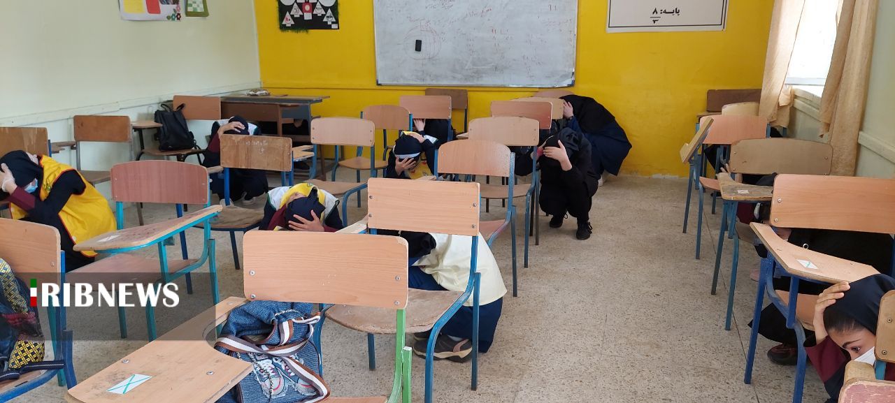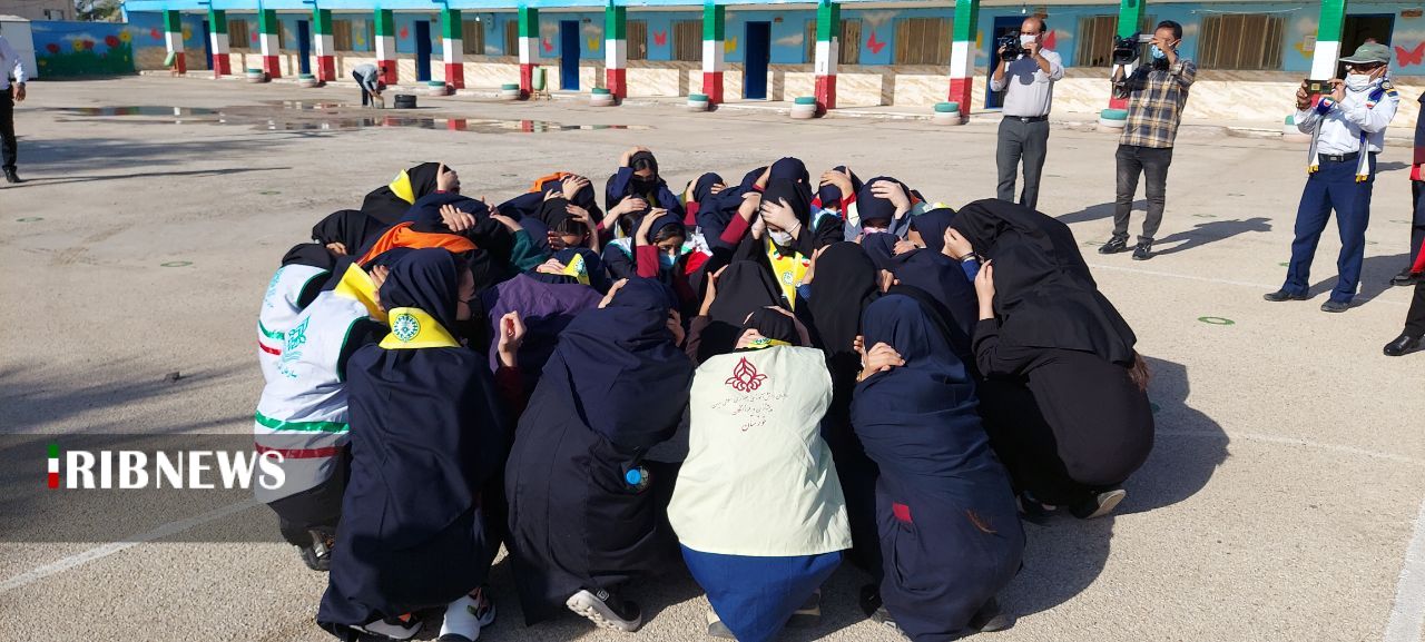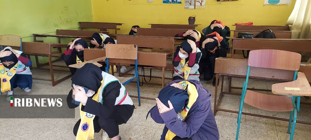 دانش آموزان دبیرستانی آبادان، امروز، راهکارهای آمادگی در برابر خطرات ناشی از زمین لرزه را تمرین کردند.