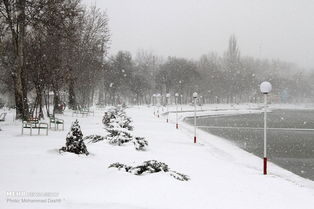 بارش برف چهره پائیزی اردبیل را سفید کرد.