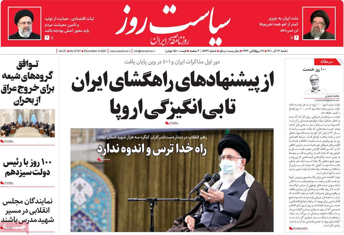 صفحه نخست و عناوین مهم برخی از روزنامه‌های صبح کشور شنبه ۱۳ آذر ۱۴۰۰