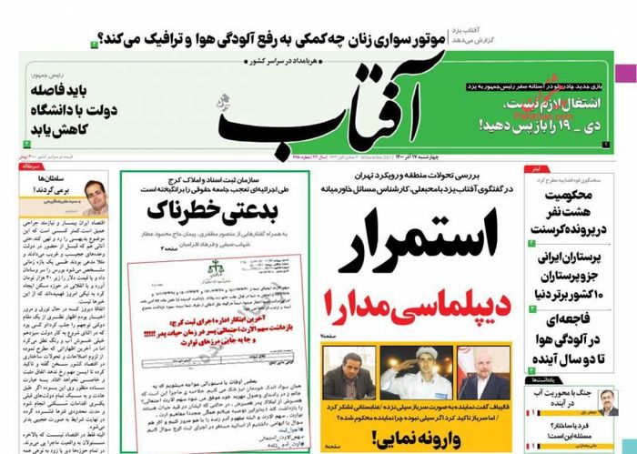 صفحه نخست و عناوین مهم برخی از روزنامههای صبح کشور چهارشنبه ۱۷ آذر ۱۴۰۰