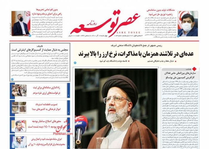 روزنامههای صبح کشور چهارشنبه ۱۷ آذر ۱۴۰۰