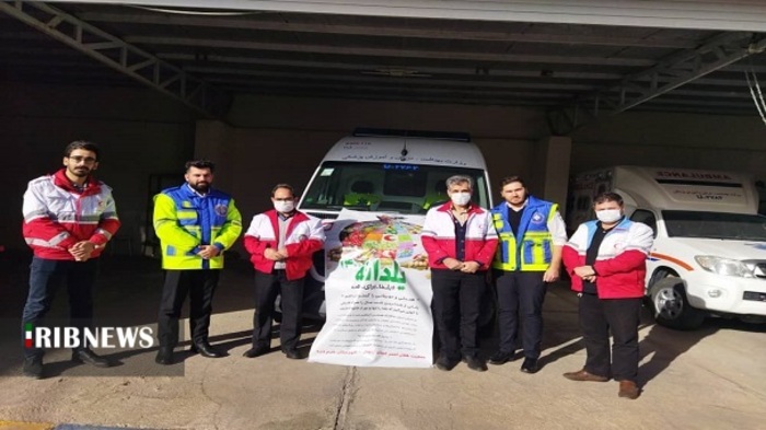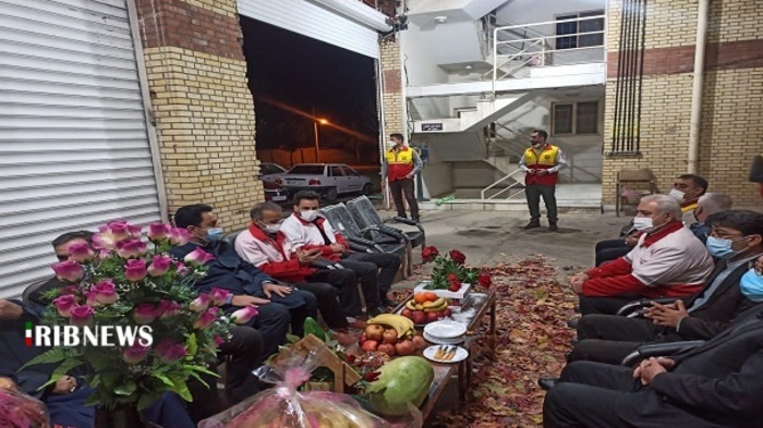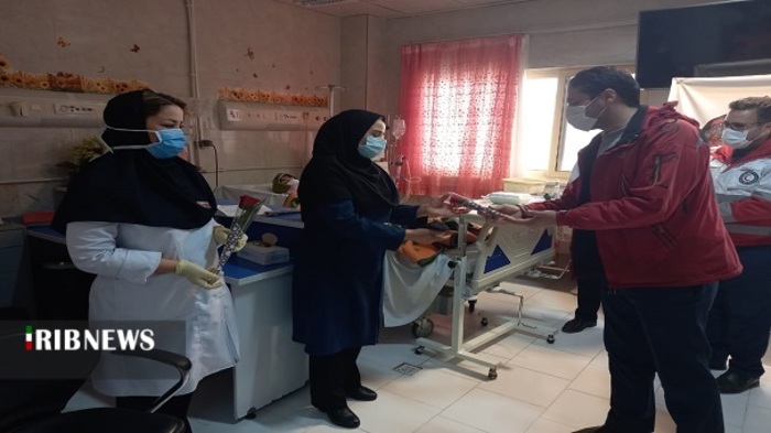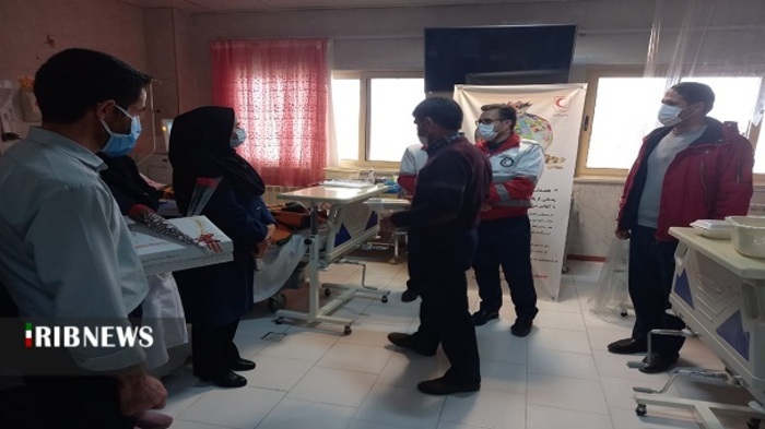 همچنین همزمان با شب یلدا اعضای هلال احمر استان، از بیمارات عیادت و اهدای گل از کادر درمان قدردانی کردند.