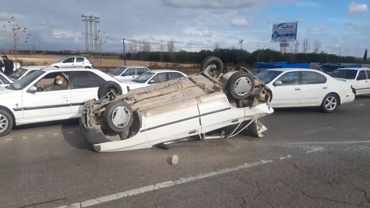 یک دستگاه پراید بر اثر برخورد با نیوجرسی در جاده ساری – سورک واژگون شد.