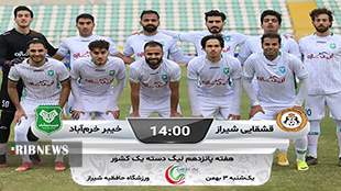 به گزارش خبرگزاری صداوسیما مرکز لرستان در هفته پانزدهم لیگ دسته یک فوتبال باشگاههای کشور تیم فوتبال خیبر خرم آباد امروز یکشنبه ۳ بهمن ماه مهمان تیم فوتبال قشقایی شیراز است.