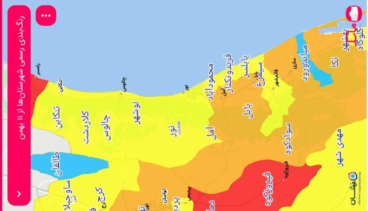 یک شهرستان مازندران در تازهترین بروزرسانی نرمافزار ماسک وزارت بهداشت در وضعیت قرمز کرونایی قرار گرفت.