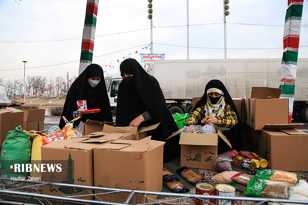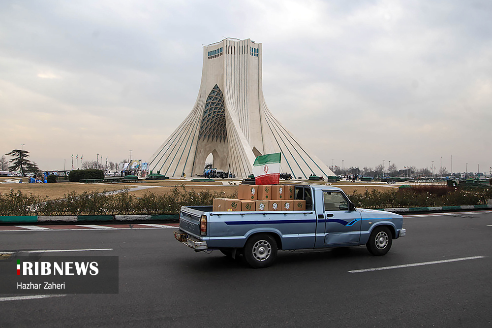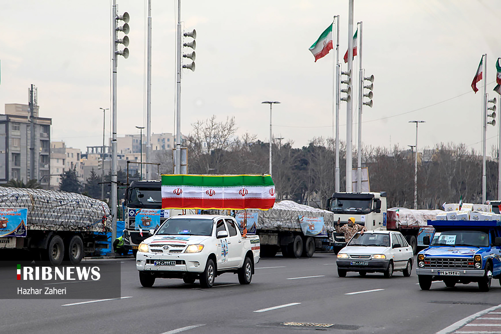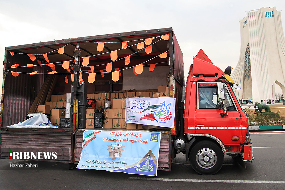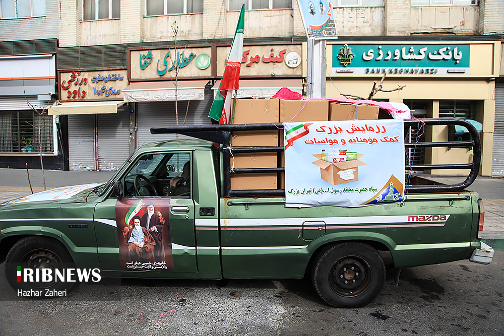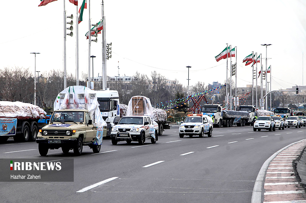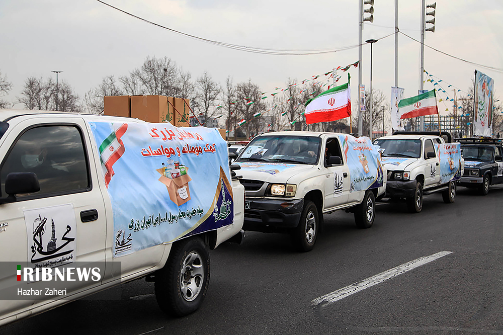 گروه عکس خبرگزاری صدا و سیما؛ با همکاری سپاه حضرت محمد رسول ا... (ص) تهران بزرگ به مناسبت بزرگداشت ایام ا... دهه فجر انقلاب اسلامی مراسم باشکوه خودرویی توزیع ۱۱۰ هزار بسته کمک مومنانه صبح امروز جمعه ۱۵ بهمن ماه ۱۴۰۰ از میدان انقلاب تهران تا میدان آزادی با حضور سردار حسن زاده فرمانده سپاه حضرت محمد رسول ا... (ص) تهران بزرگ و زاکانی شهردار تهران و مسئولین شهری و فرماندهان برگزار شد.این بزرگترین کاروان کمک مومنانه سپاه محمد رسول الله (ص) تهران بزرگ با ۱۲۰۰ خودرو و ۱۱۰هزار بسته کمک معیشتی میباشد. علیرضا زاکانی شهردار تهران نیز در این مراسم، با تشکر از اقدامات سپاه محمد رسول الله (ص)، اظهار کرد: سپاه امروز خدمت را برای خود یک مدالی بر سینه خلق کرده و امروز ما جلوه بزرگ آن را از سپاه بزرگ محمد رسول الله (ص) مشاهده میکنیم.