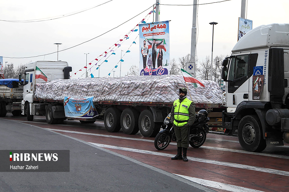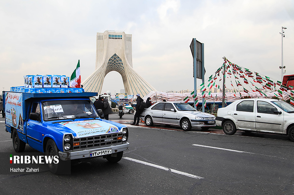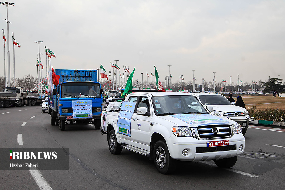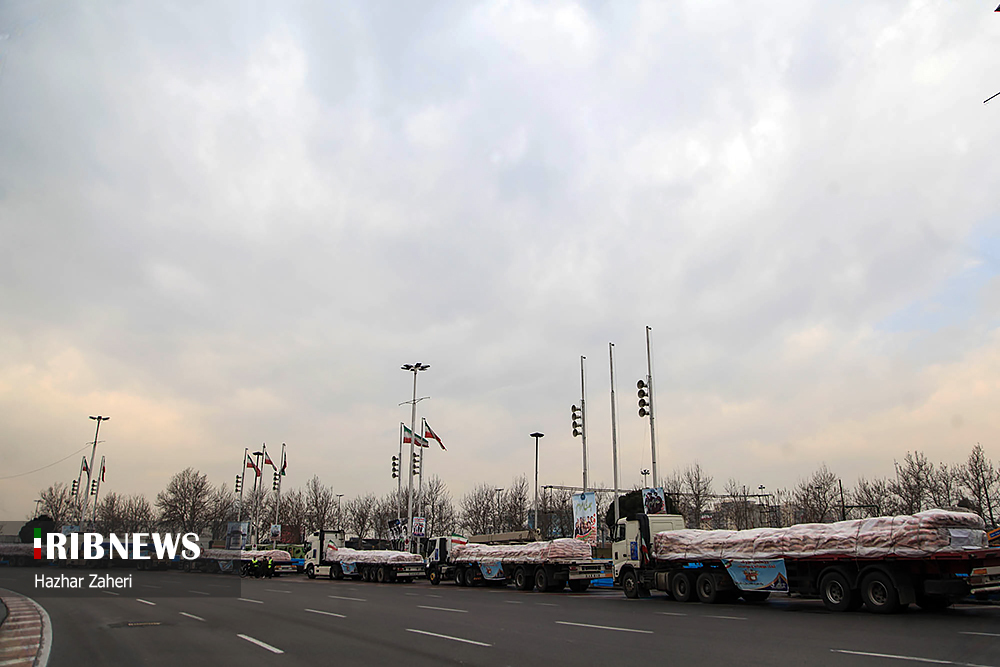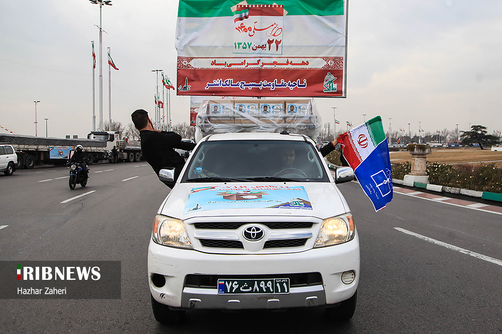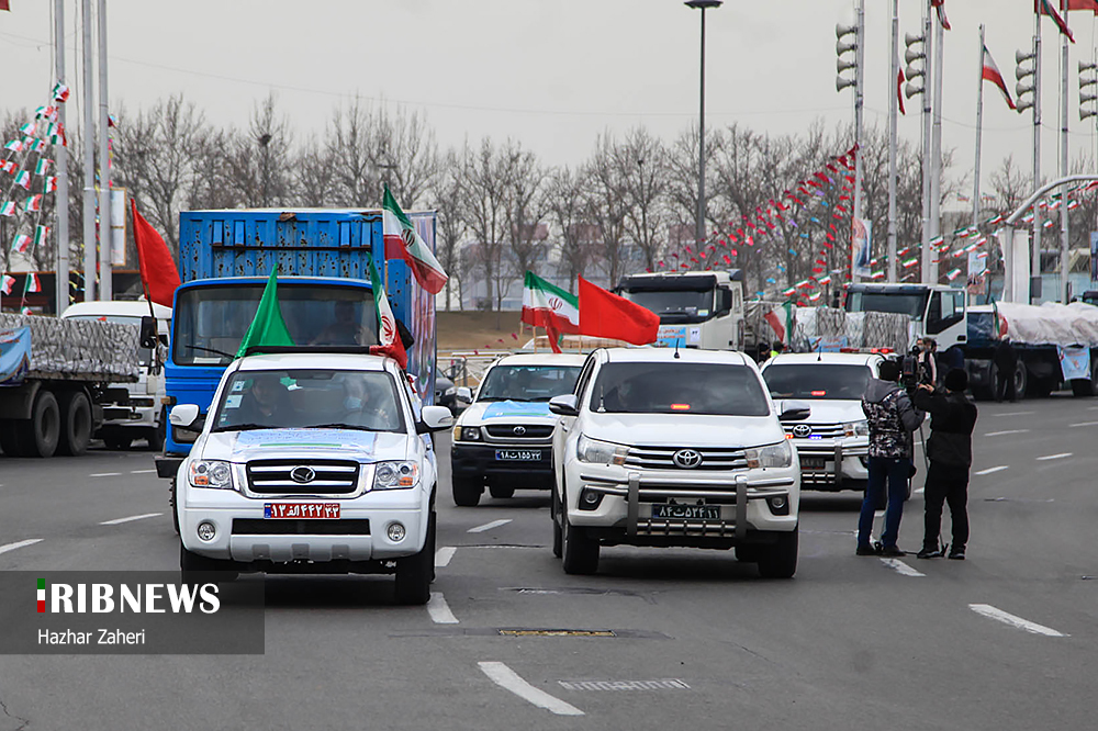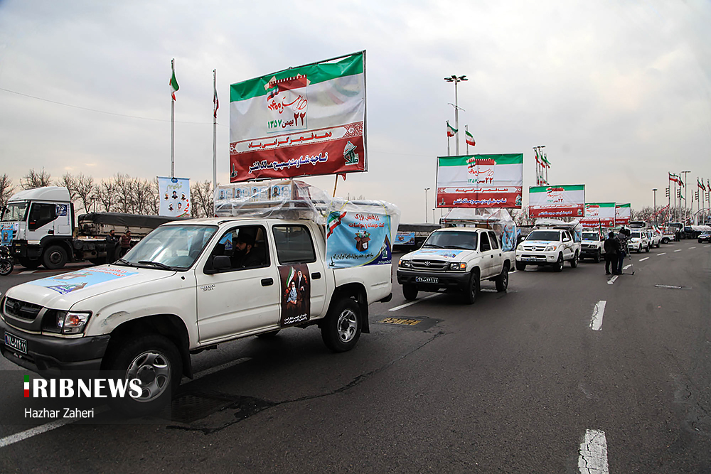گروه عکس خبرگزاری صدا و سیما؛ با همکاری سپاه حضرت محمد رسول ا... (ص) تهران بزرگ به مناسبت بزرگداشت ایام ا... دهه فجر انقلاب اسلامی مراسم باشکوه خودرویی توزیع ۱۱۰ هزار بسته کمک مومنانه صبح امروز جمعه ۱۵ بهمن ماه ۱۴۰۰ از میدان انقلاب تهران تا میدان آزادی با حضور سردار حسن زاده فرمانده سپاه حضرت محمد رسول ا... (ص) تهران بزرگ و زاکانی شهردار تهران و مسئولین شهری و فرماندهان برگزار شد.این بزرگترین کاروان کمک مومنانه سپاه محمد رسول الله (ص) تهران بزرگ با ۱۲۰۰ خودرو و ۱۱۰هزار بسته کمک معیشتی میباشد. علیرضا زاکانی شهردار تهران نیز در این مراسم، با تشکر از اقدامات سپاه محمد رسول الله (ص)، اظهار کرد: سپاه امروز خدمت را برای خود یک مدالی بر سینه خلق کرده و امروز ما جلوه بزرگ آن را از سپاه بزرگ محمد رسول الله (ص) مشاهده میکنیم.