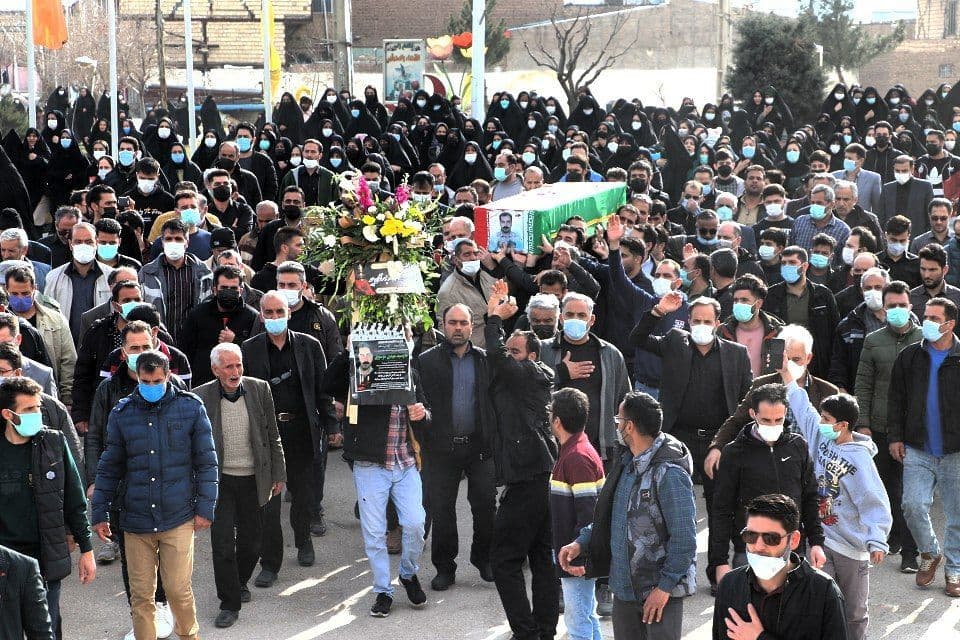آئین تشییع و تدفین پیکر جانباز شهید، سید مهدی موسوی در سگزآباد بوئین زهرا برگزار شد.