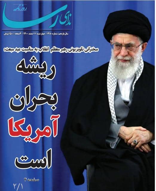 به گزارش خبرگزاری صدا و سیما مرکز خوزستان ، سخنرانی تلویزیونی رهبر معظم انقلاب به مناسبت عید سعید مبعث: ریشه بحران آمریکا است - رهبر انقلاب: طرفدار توقف جنگ هستیم -استخدام جوانان بومی مناطق مجاور پروژههای وزارت نیرو در خوزستان الزامی شد -از بازسازی منازل زلزله زده اندیکا چه خبر؟ -بازنشستگان دغدغهی یک لقمه نان دارند-تصفیه خانه شرق اهواز تا ۲۰ روز آینده وارد مدار میشود-تشکیل کمیته اقدام مشترک برای نظارت بر بازار خوزستان -بعد از هر احیا موفقیت آمیز احساس غرور میکنم -مردهای بزدل قتلهای ناموسی -از جمله عناوین برخی مطبوعات خوزستان است.