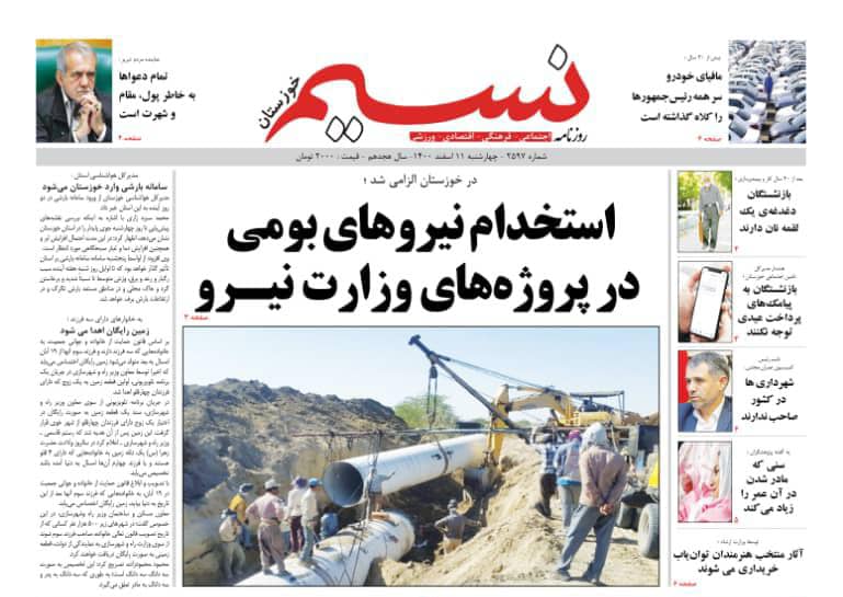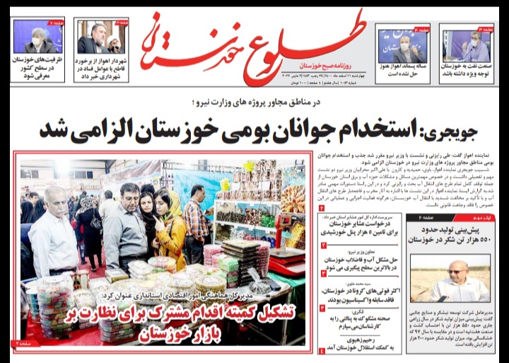 بیانات رهبر معظم انقلاب در روز عید سعید مبعث، الزام شدن استخدام جوانان بومی مناطق مجاور طرحهای وزارت نیرو در استان و نظارت بر بازار از جمله موضوعات مورد بررسی مطبوعات امروز خوزستان است.