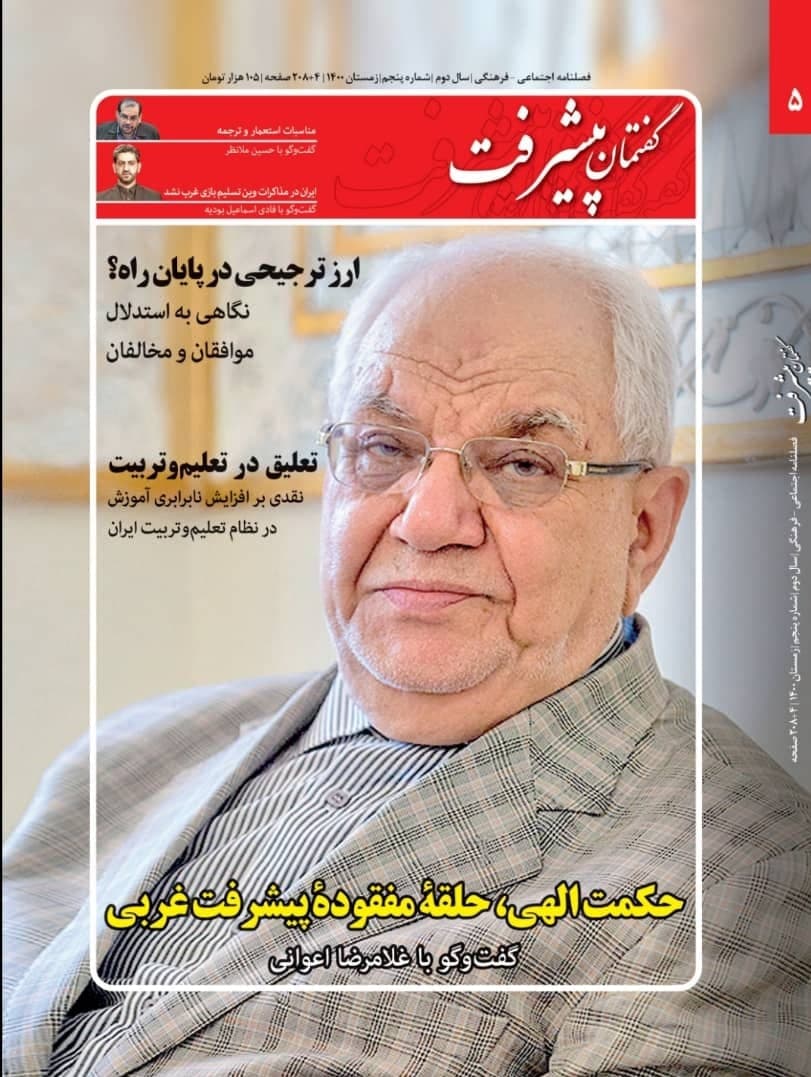 به گزارش خبرگزاری صداوسیما، شماره نوروزی گفتمان پیشرفت تیتر یک خود را به گفتگو با غلامرضا اعوانی، چهره ماندگار فلسفه کشور اختصاص داد.