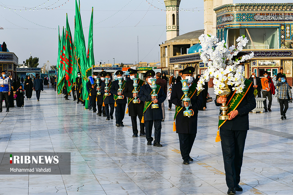 آیین تعویض پرچم مسجد مقدس جمکران عصر امروز سه شنبه ۲۴ اسفند ۱۴۰۰ در آستانه نیمه شعبان با حضور خادمین مسجد و مردم برگزار شد