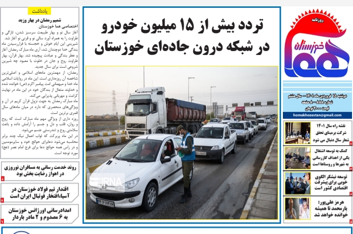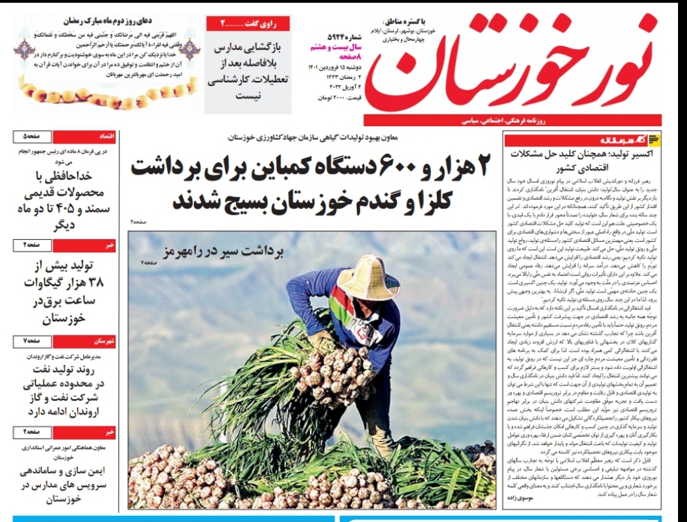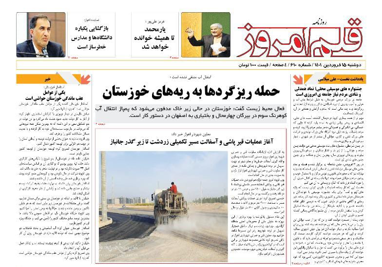 آمادگی برای برداشت محصول گندم و کلزا ، مشکلات ریزگردها و تردد در محورهای خوزستان از جمله موضوعات مورد بررسی امروز مطبوعات استان است .