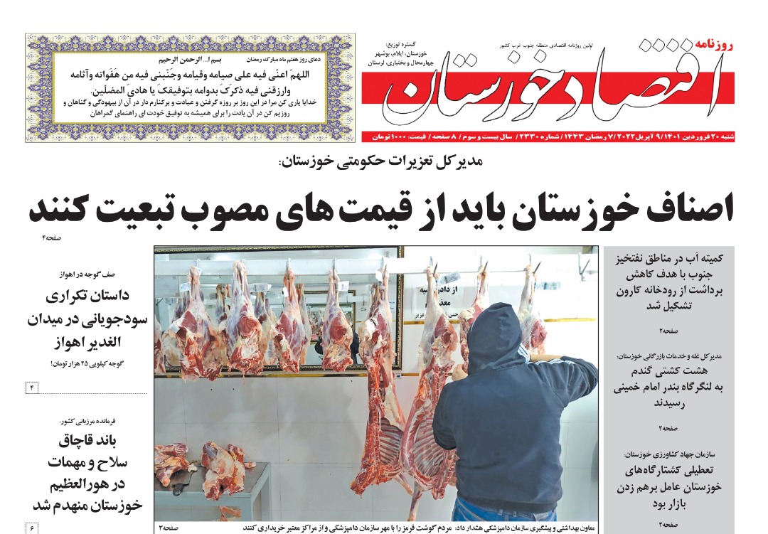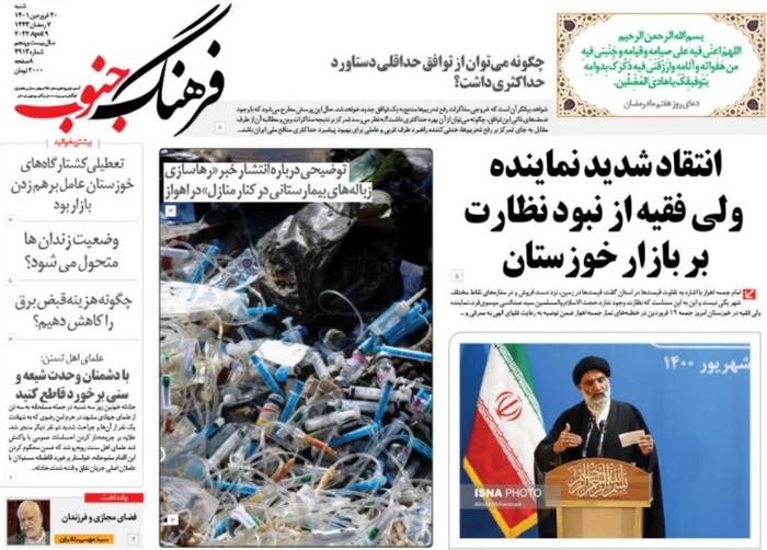 کاهش هزینه های درمان -نظارت بر بازار و کاهش منابع آبی خوزستان از جمله موضوعات مورد بررسی امروز مطبوعات استان است .