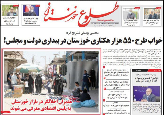 برخورد با اخلاگران در بازار ، وضعیت کرونا در استان و بازی فولاد در لیگ قهرمانان آسیا از جمله موضوعات مورد بررسی امروز مطبوعات خوزستان است.