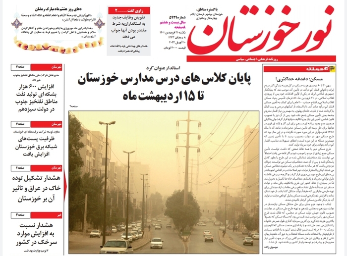 صفحه نخست برخی مطبوعات خوزستان در ۲۱ فروردین ۱۴۰۱+عکس