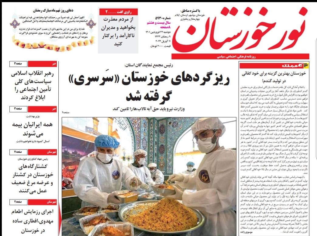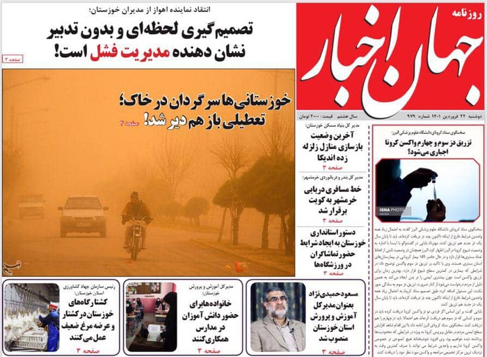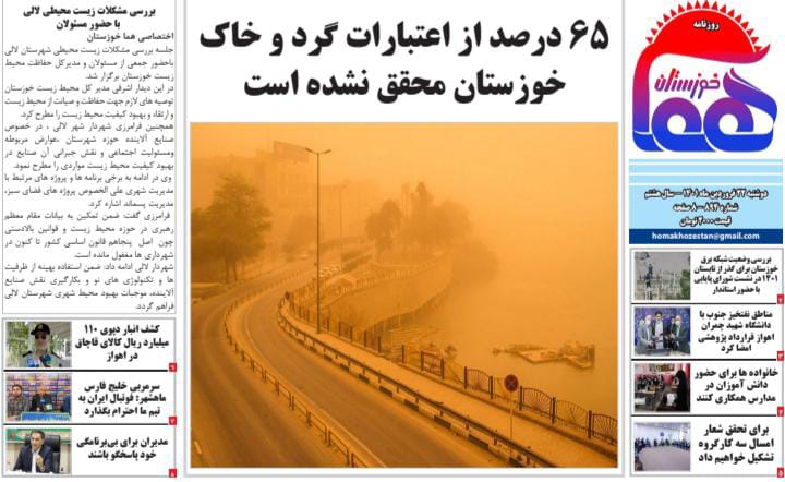صفحه نخست برخی مطبوعات خوزستان در ۲۲ فروردین ۱۴۰۱
