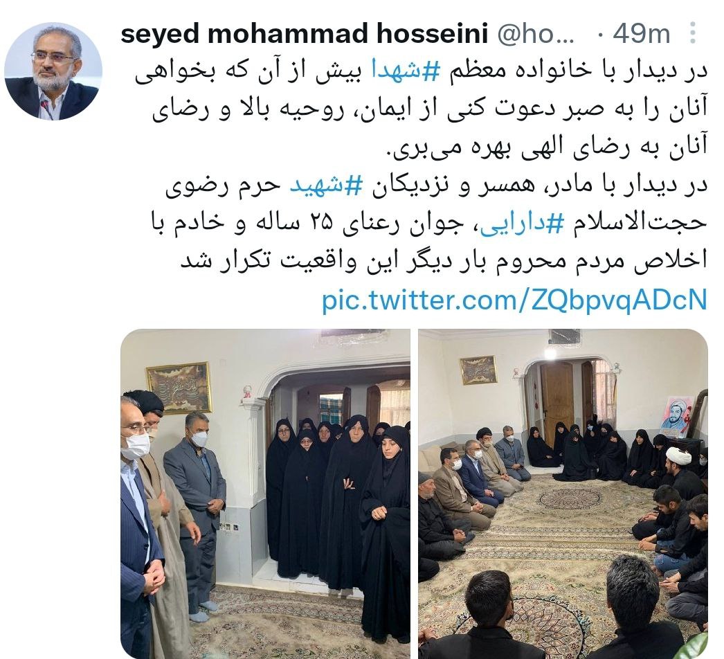 به گزارش خبرگزاری صدا و سیما، سید محمد حسینی در صفحه شخصی خود نوشت: «در دیدار با خانواده معظم شهدا بیش از آن‌ که بخواهی آنان را به صبر دعوت کنی، از ایمان، روحیه بالا و رضای آنان به رضای الهی بهره می‌بری.