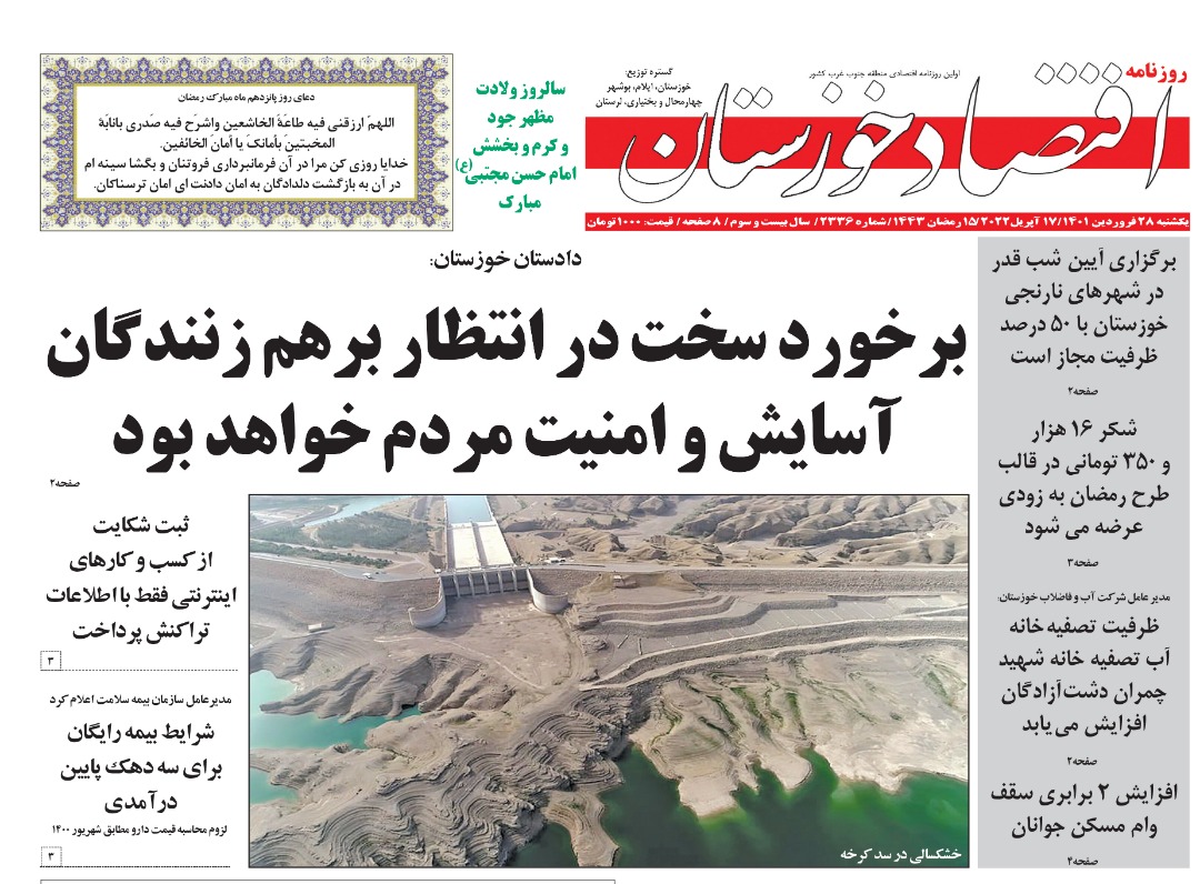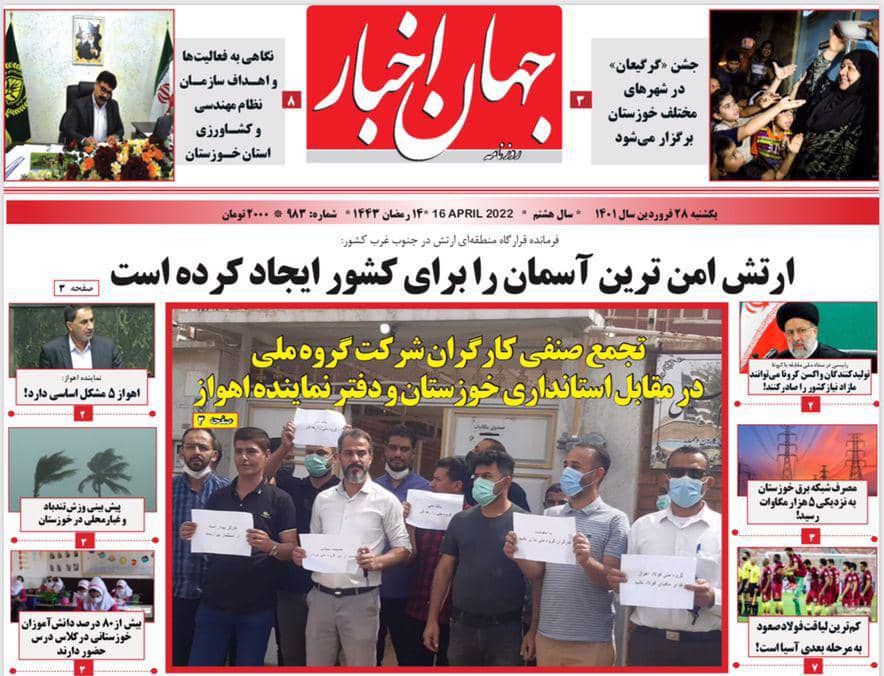 صفحه نخست برخی مطبوعات خوزستان در ۲۸ فروردین ۱۴۰۱+عکس