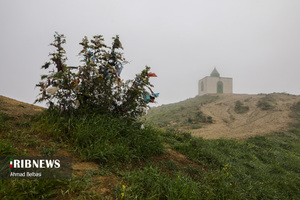 به گزارش گروه عکس خبرگزاری صدا و سیما؛ یکی از پیغمبران عرب بعد از عیسی خالد نبی غیث بن سنان عبسی بود، که در گفتگوی محاوره‌ای ترکمنان، ایشان را ( خالد نبی ) می‌گویند. راه ارتباطی زیارتگاه خالد نبی کوهستانی بوده، ولی از طریق کلاله و تمرقره قوزی تا آن محل راه دشواری نیست. به دلیل دوری راه و فقدان وسیله نقلیه و کمبود تسهیلات رفاهی در محل و همچنین گرمای شدید تابستان و سرمای زمستان، بهترین زمان برای دیدار از آن، ماه‌های فروردین و اردیبهشت است. در نزدیکی و پایین‌تر از بقعه خالد نبی، بقعه‌های عالم بابا و چوپان عطا و دره‌ای بنام پنج شیر و همچنین چشمه خضر دندان قرار دارند. طبق روایات رایج بین اهالی، عالم بابا پدر همسر خالد نبی و چوپان عطا، شبان خالد نبی یا یکی از اولیای گمنام یا یکی از همراهان وی بوده‌است، که همگی آن‌ها مورد توجه و احترام ترکمن‌ها هستند. در قسمت شرق بقعه چوپان عطا و پیوسته به آن و بر روی یک رشته تپه ماهور‌های خاکی که ارتفاع آن‌ها به مراتب کمتر از ارتفاع محل مرقد خالد نبی است، گورستان عظیمی دیده می‌شود که حدود ۶۰۰ سنگ مزار استوانه‌ای تا ارتفاع حداکثر ۲ متر در آن دیده می‌شود.