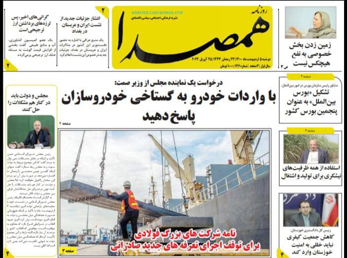 صفحه نخست برخی مطبوعات خوزستان در ۵ اردیبهشت ۱۴۰۱+عکس