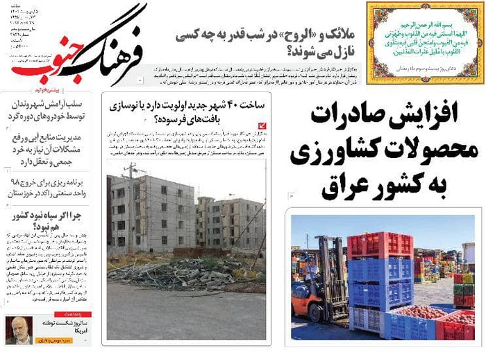 افزایش صادرات محصولات کشاورزی استان به عراق، مدیریت منابع آبی و اختلال در جمع آوری پسماند‌های اهواز از جمله موضوعات مورد بررسی امروز مطبوعات استان است.