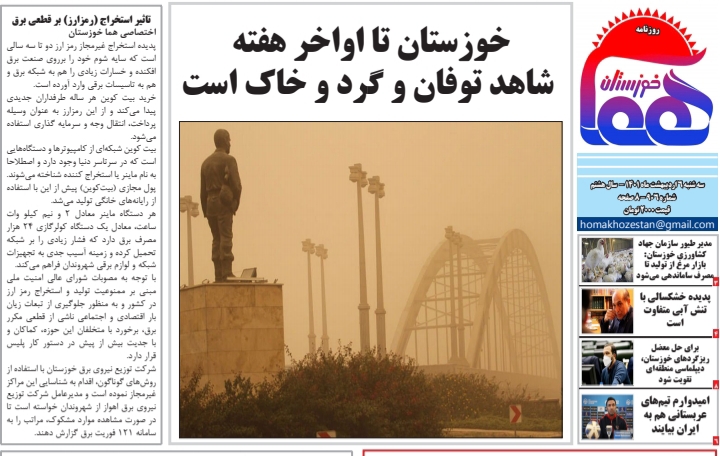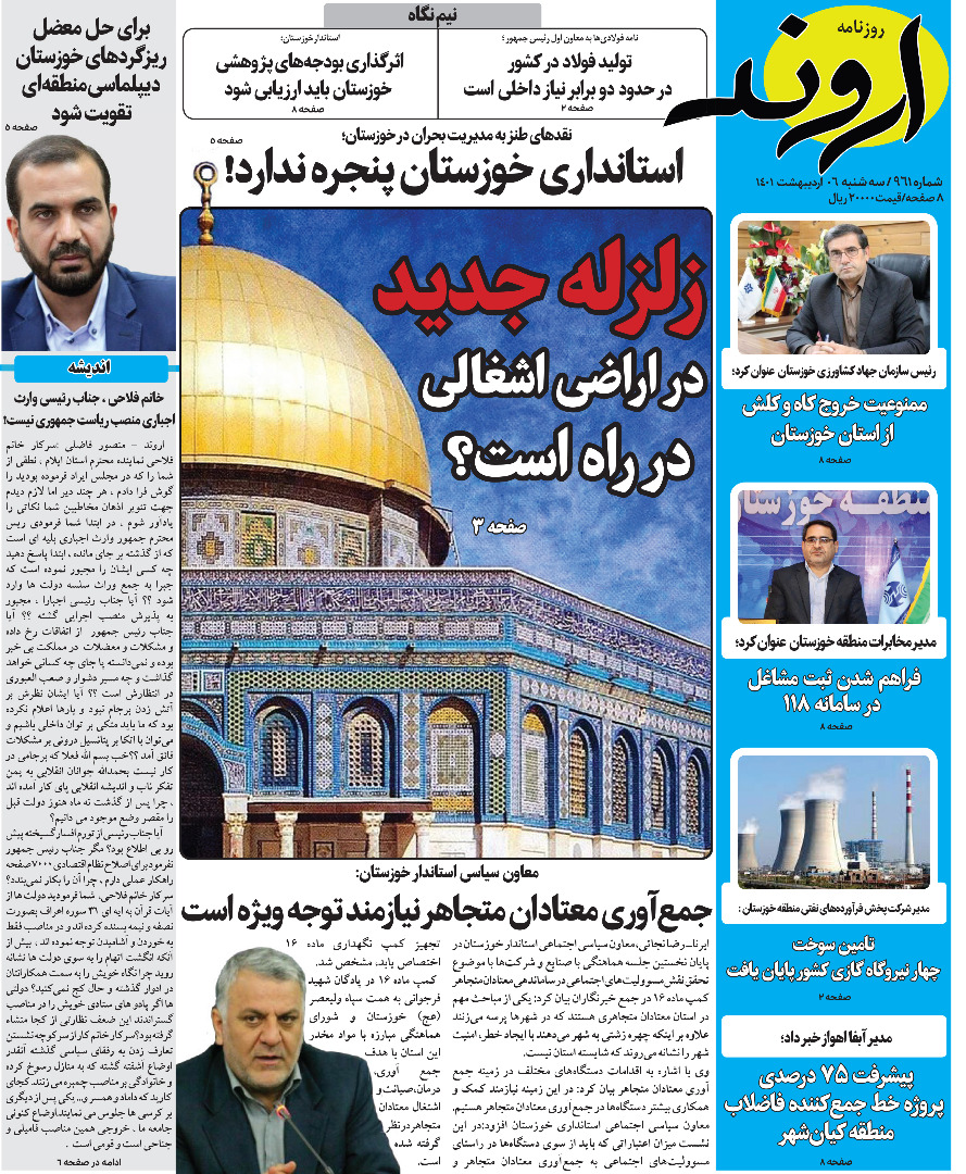 روز جهانی قدس ،وضعیت گرد و خاک ، و کشاورزی دانش بنیان از جمله موضوعات مورد بررسی مطبوعات امروز خوزستان است .