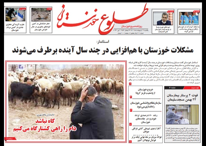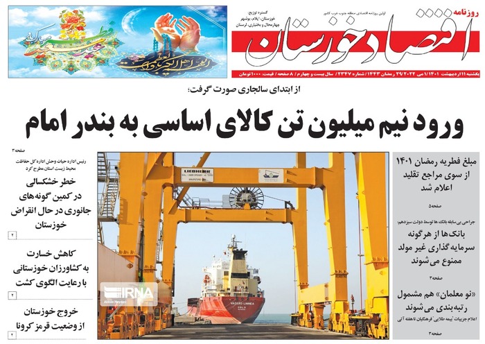 تلاش برای حل مشکلات خوزستان ، ورود کالاهای اساسی به بندر امام خمینی و وضعیت کرونا در استان از جمله موضوعات مورد بررسی مطبوعات امروز خوزستان است .