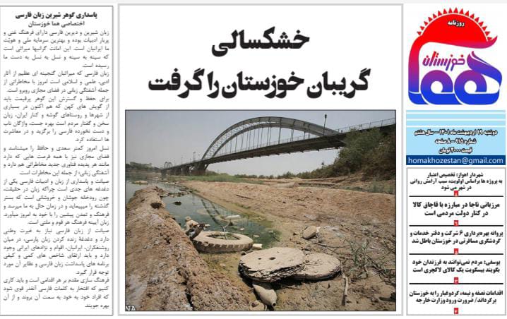 به گزارش خبرگزاری صدا و سیما مرکز خوزستان ، رهبر معظم انقلاب در دیدار بشار اسد:سوریه در جنگ بین المللی پیروز شد -توزیع روغن در ۲۳ فروشگاه زنجیرهای خوزستان -اقدمات نصف و نیمه، گرد و غبار را به خوزستان برگردانید -۶۴ درصد از حجم مفید مخازن سدهای خوزستان خالی است! -شهردار اهواز: تخصیص اعتبار به پروژهها براساس اولویت، سبب آرامش روانی در شهر میشود -اجاق سرد-از جمله عناوین امروز مطبوعات خوزستان است.