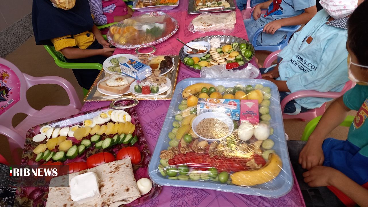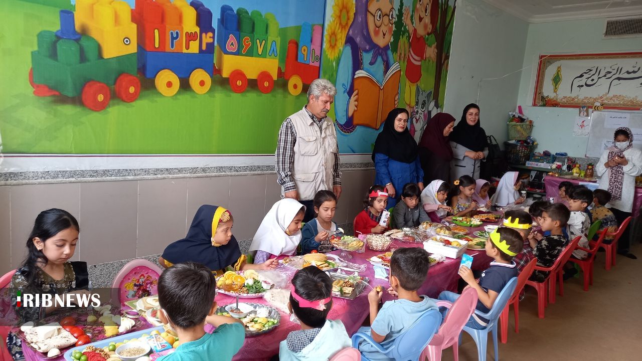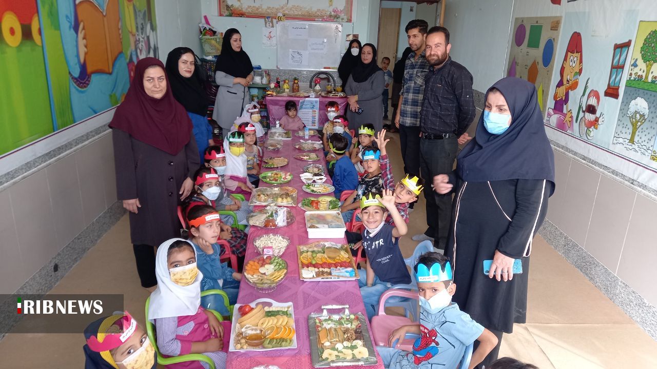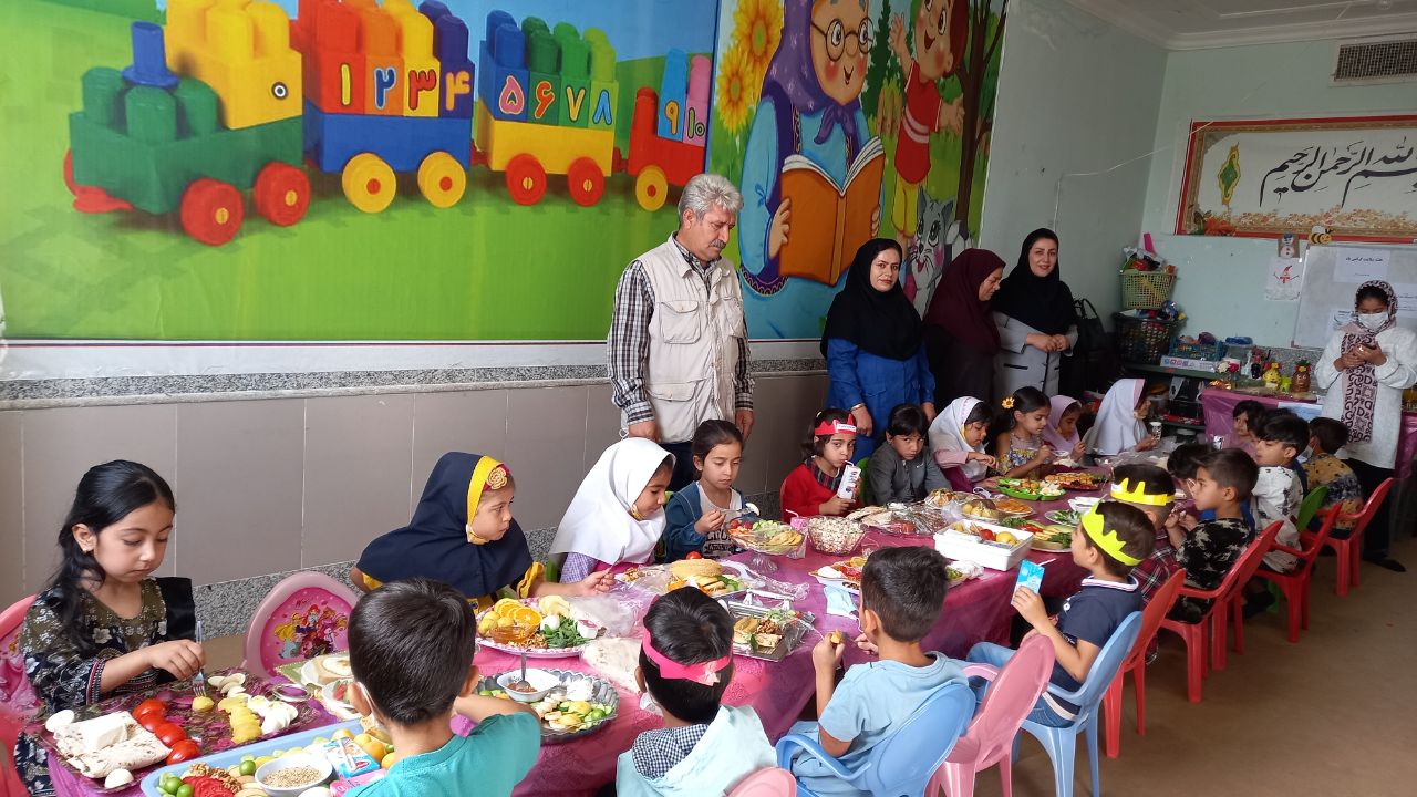 به مناسبت هفته سلامت سفره سلامت در مهدکودک و پیش دبستانی بوستان دانش در شهر بوستان از شهرستان باشت برپا شد