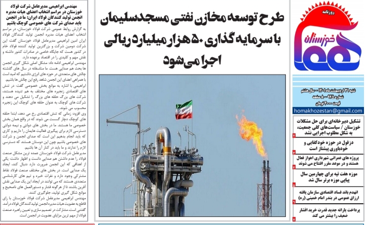 خطبه های نماز جمعه اهواز ، طرح توسعه مخازن نفتی مسجدسلیمان و بازداشت متهمان اقتصادی در بندر امام خمینی از جمله موضوعات مورد بررسی امروز مطبوعات خوزستان است .