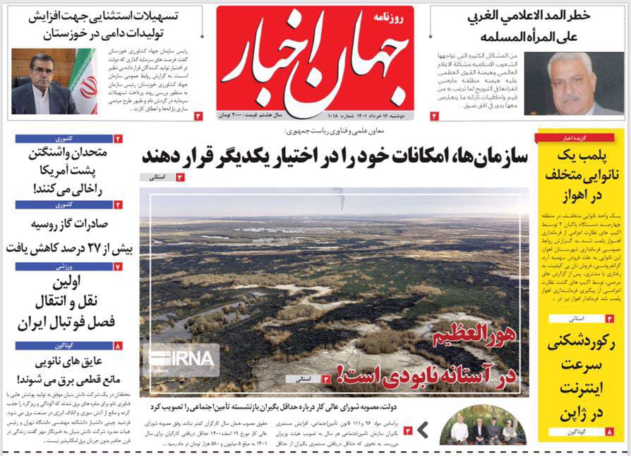 بیشتر بخوانید: صفحه نخست برخی مطبوعات خوزستان در ۱۰ خرداد ۱۴۰۱+عکس
