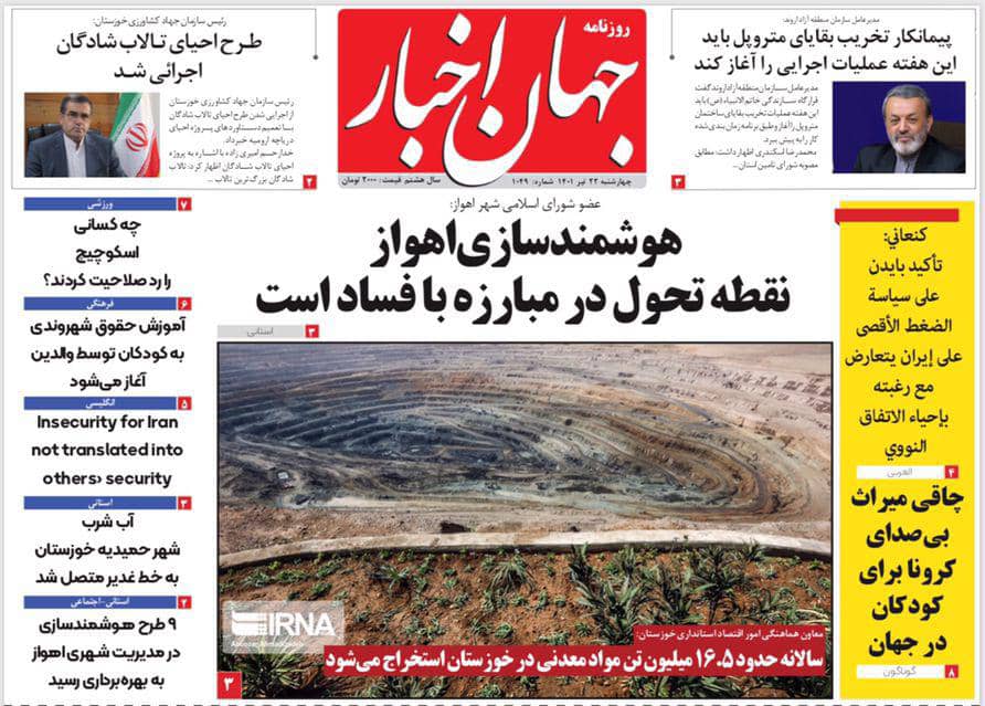 بیشتر بخوانید: عناوین برخی مطبوعات خوزستان در ۲۱ تیرماه ۱۴۰۱+عکس