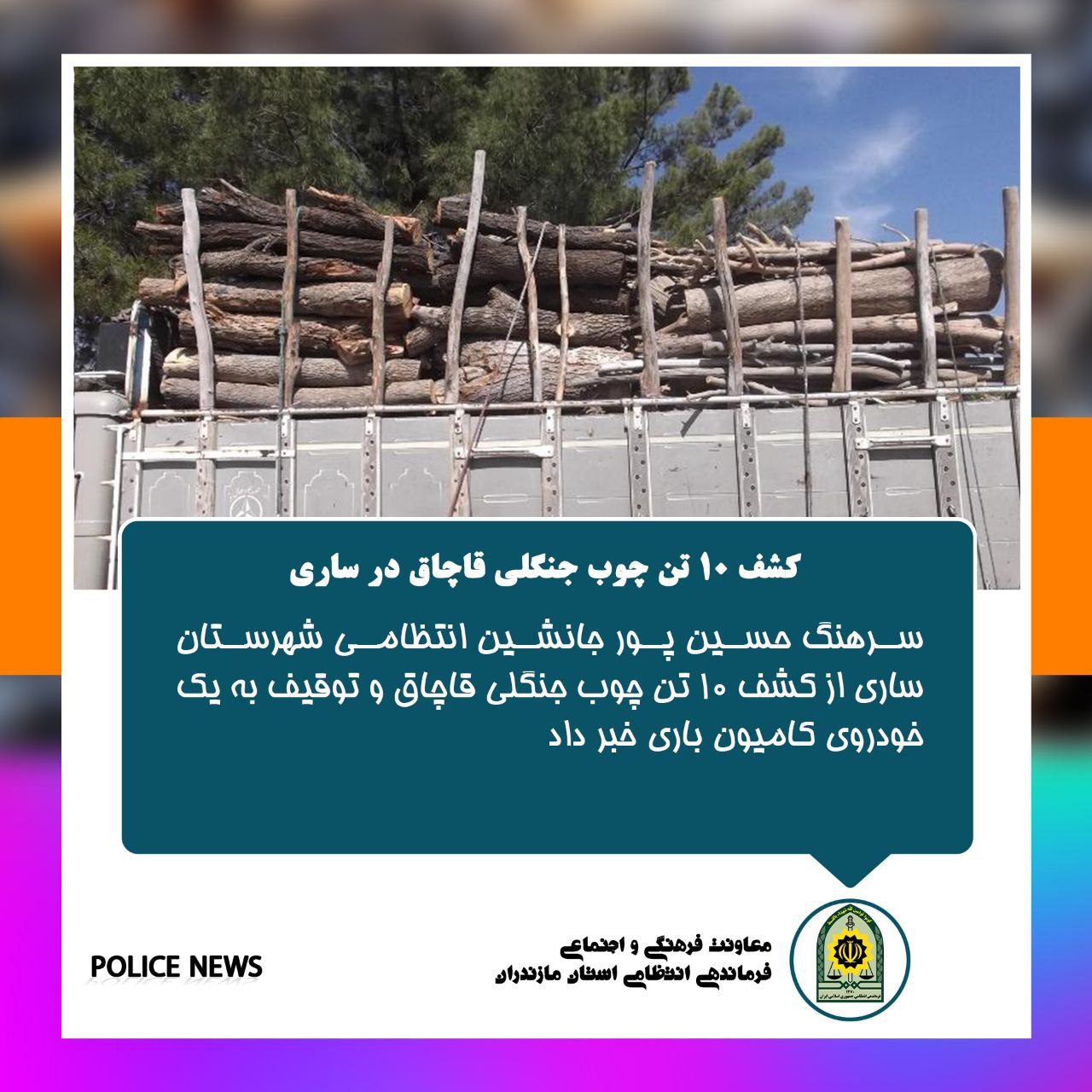 سرهنگ "حسن عنایتی گفت: راننده خودوروی نیسان بازدداشت و به مرجع قضائی معرفی و همچنین چوبهای قاچاق کشف شده به اداره منابع طبیعی شهرستان بهشهر تحویل شد.